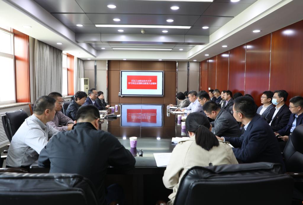 4月14日,米兰在线(中国)唯一官方网站召开党委扩大会议,党委书记王振杰向各基层党组织书记传达习近平总书记对职业教育工作作出的重要指示和全国职业教育大会精神,并在材料工程系组织召开座谈会,就如何贯彻落实习近平总书记重要指示和全国职业教育大会精神、如何办好本科职业教育进行交流研讨。
