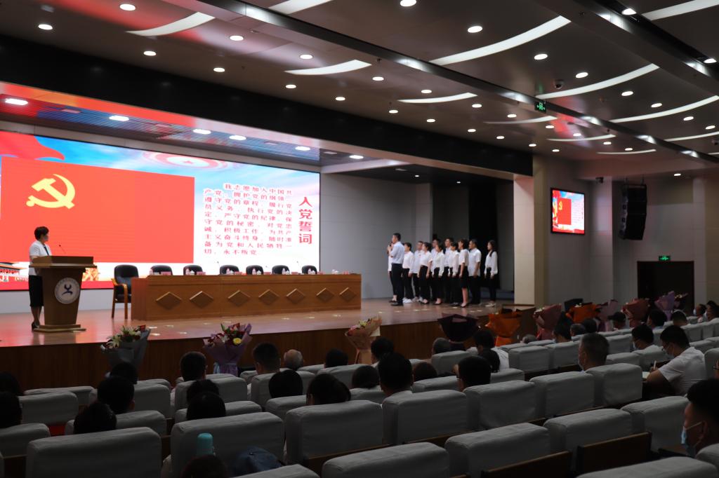 会议在庄严的国歌声中拉开序幕。校长薛晓萍宣读了荣获“光荣在党50年”纪念章的党员名单,米兰在线(中国)唯一官方网站共有27名老党员获此殊荣。党委书记王振杰、校长薛晓萍为现场老党员代表颁发“光荣在党50年”纪念章,青年学生向他们献花致敬。校领导分别为2020年度先进基层党组织、优秀党务工作者、优秀党员代表颁发奖状和荣誉证书。新发展教师党员面对鲜红的党旗,庄严宣誓“为共产主义奋斗终身”!