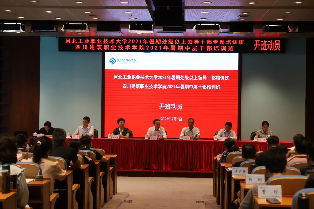 培训期间,恰逢7月1日建党100周年庆祝日,全体学员集体观看了庆祝中国共产党成立100周年大会。在开班仪式上,党委书记王振杰作动员讲话,他介绍了举办此次培训班的重要意义和主要任务,要求全体学员端正态度,珍惜学习机会;学用结合、推动成果转化;严守纪律,树立良好形象;加强交流,促进共同提高,真正做到学有所成学有所获。国家教育行政学院副院长于京天出席开班仪式,他希望全体学员结合自身岗位和本职工作,结合自身思想实际,转变角色与身份,从高等职业教育发展全局和立德树人高度有针对性地加强学习。