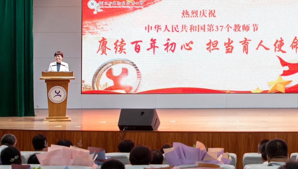 薛晓萍向全校广大教职工和离退休老教师、老同志表示节日的问候和崇高的敬意,向荣获表彰的先进集体和优秀个人表示衷心的祝贺。她指出,今年恰逢建党百年,职业教育改革发展也推出了一系列重大举措。学校取得了一批鼓舞人心、催人奋进的标志性成果,这离不开全体教职员工的敬业奉献,辛勤耕耘。大家用高尚的师德、求真务实的精神、严谨治学的态度、渊博精湛的学识、开阔宽广的视野,为国家和经济社会发展培养了一大批高素质技术技能人才。