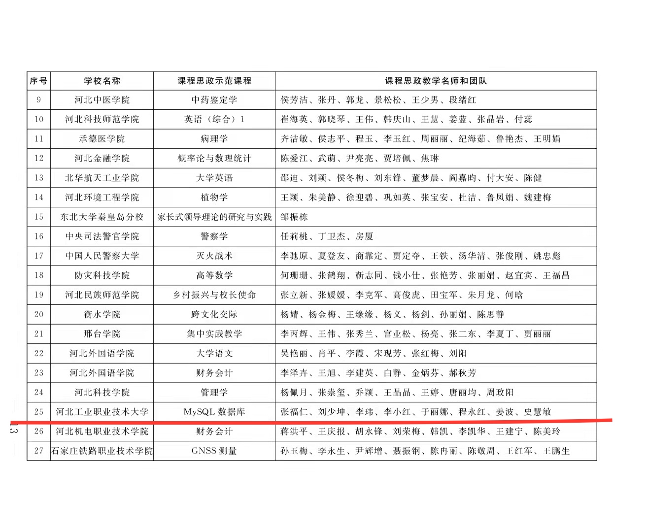 近日,省教育厅公布了河北省课程思政示范项目建设名单。米兰在线(中国)唯一官方网站申报的继续教育类课程《MySQL数据库》入选。该评选是根据《河北省教育厅关于开展课程思政示范项目建设工作的通知》要求,深入实施《高等学校课程思政建设指导纲要》,开展的课程思政示范课程、教学名师、教学团队和教学研究示范中心评选工作。