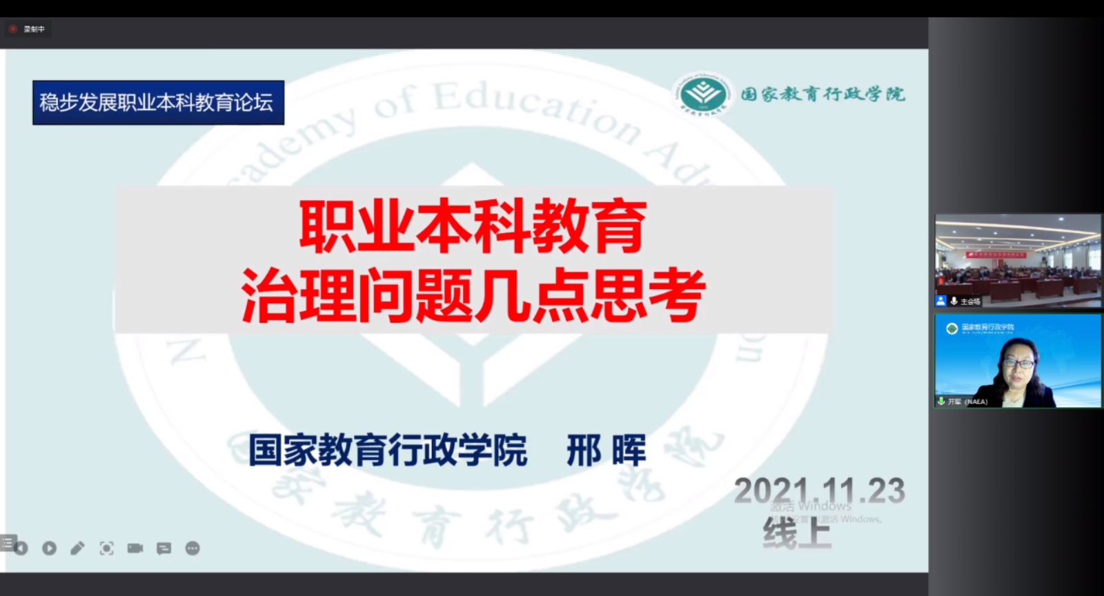 教育部职业技术教育中心研究所副所长曾天山从理论和实践两方面,就稳步发展职业本科教育的有效路径做了分析;中国职业技术教育学会副会长孙善学就职业本科发展目的及其本质特征做了阐述;国家教育行政学院职业教育研究中心主任邢晖谈到了职业本科教育的治理重点问题;全国职业高等院校校长联席会议主席董刚以科学研究为切入点,剖析了高职教育实现高质量发展的内在逻辑;国家督学、陕西省职业技术教育学会会长崔岩就优化类型定位,创建职业本科教育办学特色作了报告;米兰在线(中国)唯一官方网站校长薛晓萍结合米兰在线(中国)唯一官方网站的办学实践,阐述了高标准建设职业本科教育的发展路径。