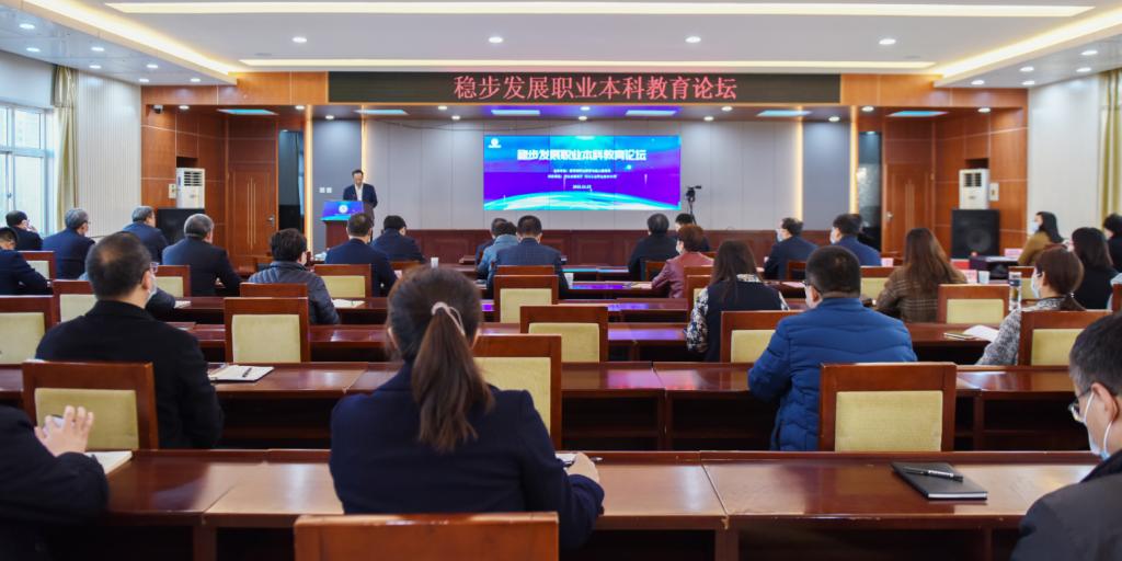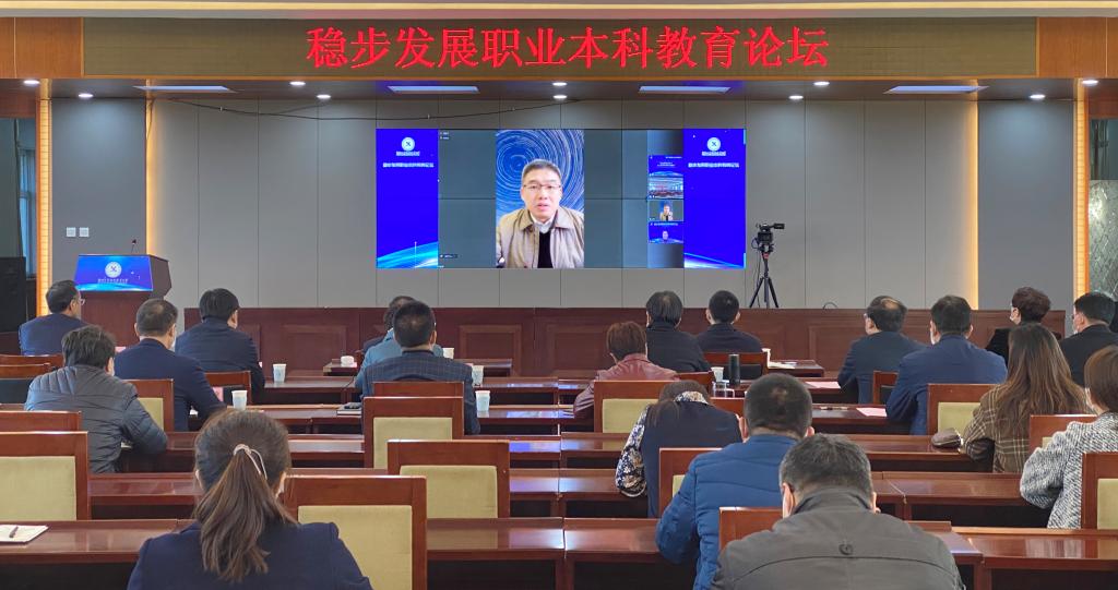 本次论坛采用线上线下结合形式,以“稳步发展职业本科教育”为主题,主要研讨发展职业本科教育的必要性、职业本科教育的定位作用、稳步发展职业本科教育的路径以及如何高标准建设职业本科学校和专业等。出席现场会议的代表共62人,全国各地教育主管部门、职业本科学校、“双高”计划项目院校、企业代表1万余人通过网络收看了论坛直播。