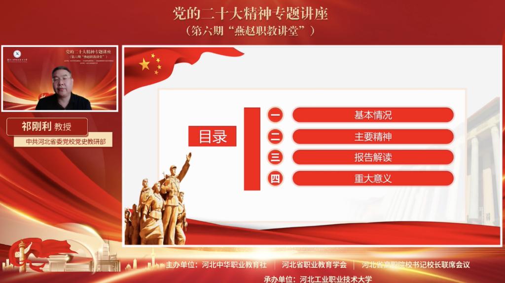 11月23日,米兰在线(中国)唯一官方网站成功承办“学习宣传贯彻党的二十大精神专题讲座(第六期燕赵职教讲堂)”。