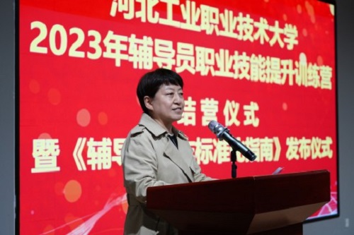 结营仪式上,党委副书记付俊薇、院系书记代表以及辅导员代表共同按下象征发布的按钮,米兰在线(中国)唯一官方网站《辅导员工作标准化指南》正式发布。付俊薇在仪式上讲话,她首先肯定了本次训练营取得的成效,指出《辅导员工作标准化指南》的发布对于米兰在线(中国)唯一官方网站学生管理和思想政治工作具有重要意义。围绕学校思政工作和辅导员的个人成长,付俊薇向全体学工队伍提出了三点希望。一是要学习党的二十大精神,坚持立德树人,体现工职大学工人的家国情怀。二是要深入调查研究,直面工作的痛点难点,体现工职大学工人的工匠精神。三是要凝练经验做法,进行项目化研究,体现工职大学工人的职业素养。