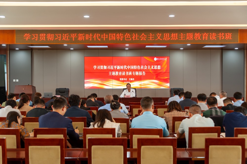 王振杰从加强理论武装和提高党性修养、深刻领会习近平新时代中国特色社会主义思想的世界观和方法论、深刻领悟党的二十大精神、推动学校事业高质量发展等四个方面做专题报告,对习近平新时代中国特色社会主义思想、党的二十大精神进行了系统阐述和细致讲解,并以推动学校事业高质量发展为出发点,在全力推进高水平职业本科大学建设、以“双高”建设带动提升学校整体发展、做好西柏坡校区搬迁工作、加强和改进学生思想政治工作、做好高层次人才工作、加强干部队伍建设等六个方面提出具体要求。