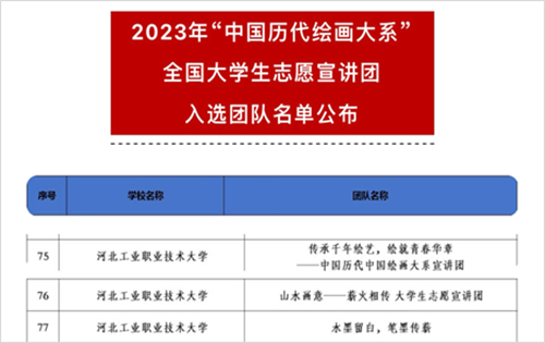 为深入学习贯彻落实习近平文化思想,推动中华优秀传统文化的传承发展和国际交流,团中央青年志愿者行动指导中心、教育部中外语言交流合作中心等联合发布了关于遴选2023年“中国历代绘画大系”全国大学生志愿宣讲团的公告,最终米兰在线(中国)唯一官方网站三支宣讲团入选。