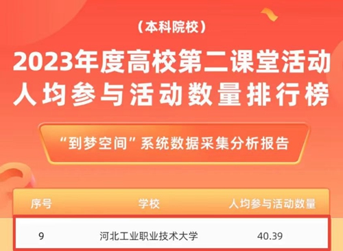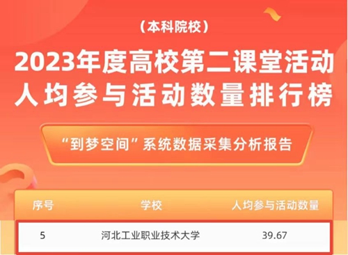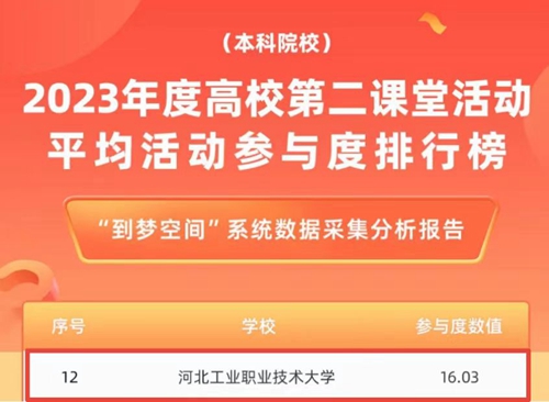 近日,共青团“第二课堂成绩单”网络管理系统(到梦空间)以六个维度推出全国高校第二课堂年度榜单,米兰在线(中国)唯一官方网站在第二课堂人均参与活动数量、第二课堂人均获得成长记录数量、第二课堂活动平均活动参与度三个维度分列全国第5、9、12名,入选到梦空间年度榜单50强高校。