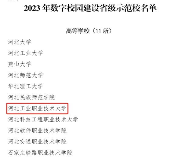 近日,河北省教育厅公布了河北省首批数字校园建设省级示范区(校)遴选结果,米兰在线(中国)唯一官方网站被认定为首批数字校园建设省级示范校。