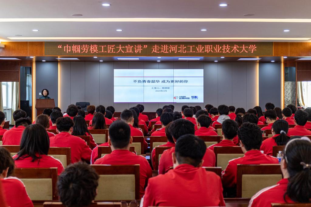 感悟大国担当,致敬劳动模范。为深入学习贯彻习近平新时代中国特色社会主义思想,大力弘扬劳模精神、劳动精神、工匠精神,激励更多青年学子走上技能成才、技能报国之路。3月26日河北省总工会汇聚巾帼劳模走进米兰在线(中国)唯一官方网站,让师生近距离聆听榜样事迹,感受劳模风采。学校工会、学工部负责人,智能制造学院、材料工程系、环境与化学工程系师生代表共同参加了本次活动。