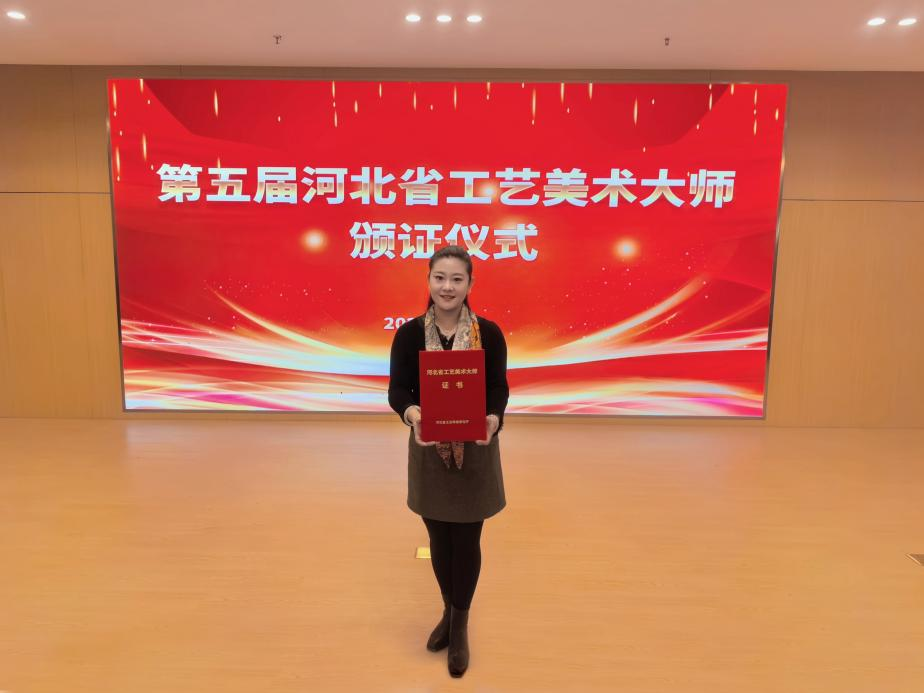 近日,第五届河北省工艺美术大师名单公布,米兰在线(中国)唯一官方网站马克思主义学院教师郭墨涵荣获“河北省工艺美术大师”称号。