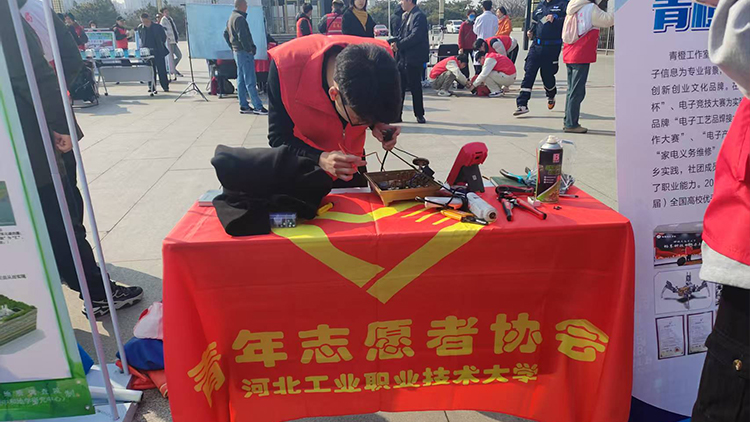 3月5日上午,“弘扬雷锋精神 传播志愿薪火”主题活动启动,共青团河北省委、河北省爱心公益协会、站管委等指导部门参加活动。“小青星驿站”作为其中贴近群众、奉献爱心的便民服务窗口,是河北省着力打造的志愿服务品牌,米兰在线(中国)唯一官方网站作为志愿服务团队之一进行展示,在2024年米兰在线(中国)唯一官方网站大学生青年志愿者协会447名志愿者在“小青星驿站”开展志愿活动累计服务3400余小时。启动仪式后,“河北省优秀志愿服务组织”青橙工作室社团进入现场志愿服务摊位,为市民进行小家电维修,此前社团多次受邀参加石家庄市志愿服务经验分享。