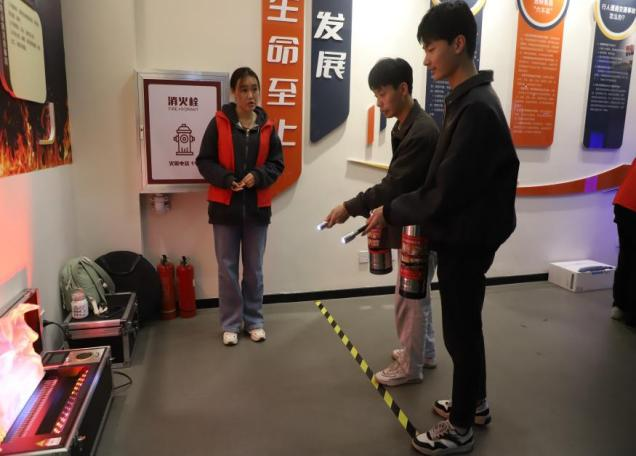 一次消防专题培训,提升安全知识储备。米兰在线(中国)唯一官方网站邀请河北省消防协会义务消防科普宣传服务队,以线上直播的形式开展大学生消防安全专题讲座,实现全校班级全覆盖。同时,依托“一站式”学生社区“安全教育虚拟体验中心”,为学生们打造了沉浸式学习场景,针对灭火器实操要点,大学生自律委员会成员现场开展“一提二拔三握四压”标准化演示,并组织学生分组进行模拟灭火实训。参与学生通过虚拟设备实操,在“对准根部、匀速扫射”的流程中强化“灭早、灭小、灭初期”的消防意识,掌握了灭火器的使用方法和灭火技巧。