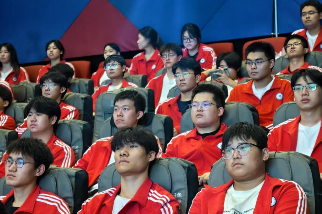 影片以神舟十三号航天员翟志刚、王亚平、叶光富在轨拍摄为第一视角,以6个月驻留任务为叙事主线,记录了空间站内的科研日常和舷窗外的壮美地球。当极光划破黑夜、蔚蓝海洋翻涌、祖国山河剪影掠过银幕时,现场师生感觉仿佛置身360公里之上的“中国宫”,被镜头中的科技与艺术交融所震撼。影片把“特别能吃苦、特别能战斗、特别能攻关、特别能奉献”的载人航天精神具象化,把宏大叙事转化为可感、可知、可悟的美育情境,师生们从航天英雄身上感悟忠诚奉献、求实创新的崇高品格,在光影审美中体悟家国情怀。