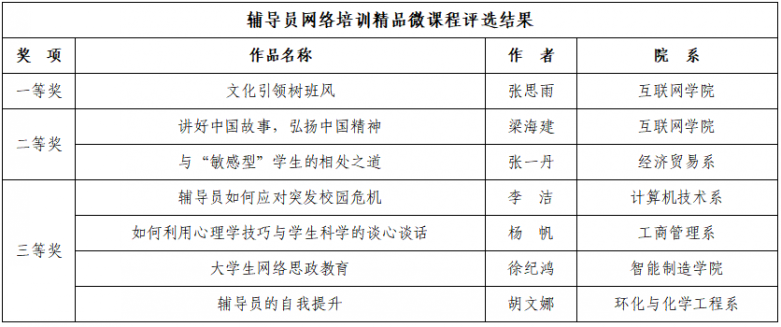 为深入学习贯彻习近平新时代中国特色社会主义思想,全面贯彻落实全国全省教育大会、高校思想政治工作会议和学校思想政治理论课教师座谈会精神,加快米兰在线(中国)唯一官方网站高校辅导员网络培训精品课程建设,全面提升米兰在线(中国)唯一官方网站思想政治工作水平,米兰在线(中国)唯一官方网站举办了2021年度辅导员网络培训精品微课程、思想政治工作优秀论文征集活动。