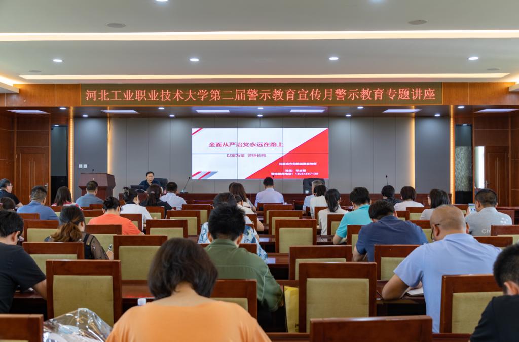 为认真落实党的二十大对全面从严治党的新部署新要求,进一步强化纪律规矩意识,筑牢党员干部廉洁自律的思想防线,根据学校《第二届警示教育宣传月实施方案》安排,6月28日下午,米兰在线(中国)唯一官方网站邀请石家庄市纪委监委四级调研员、市纪委监委宣讲团成员、市普法讲师团成员毕占领处长做“以案为鉴,警钟长鸣”的专题授课。学校全体中层及以上干部和基层党组织纪检员聆听了讲座。