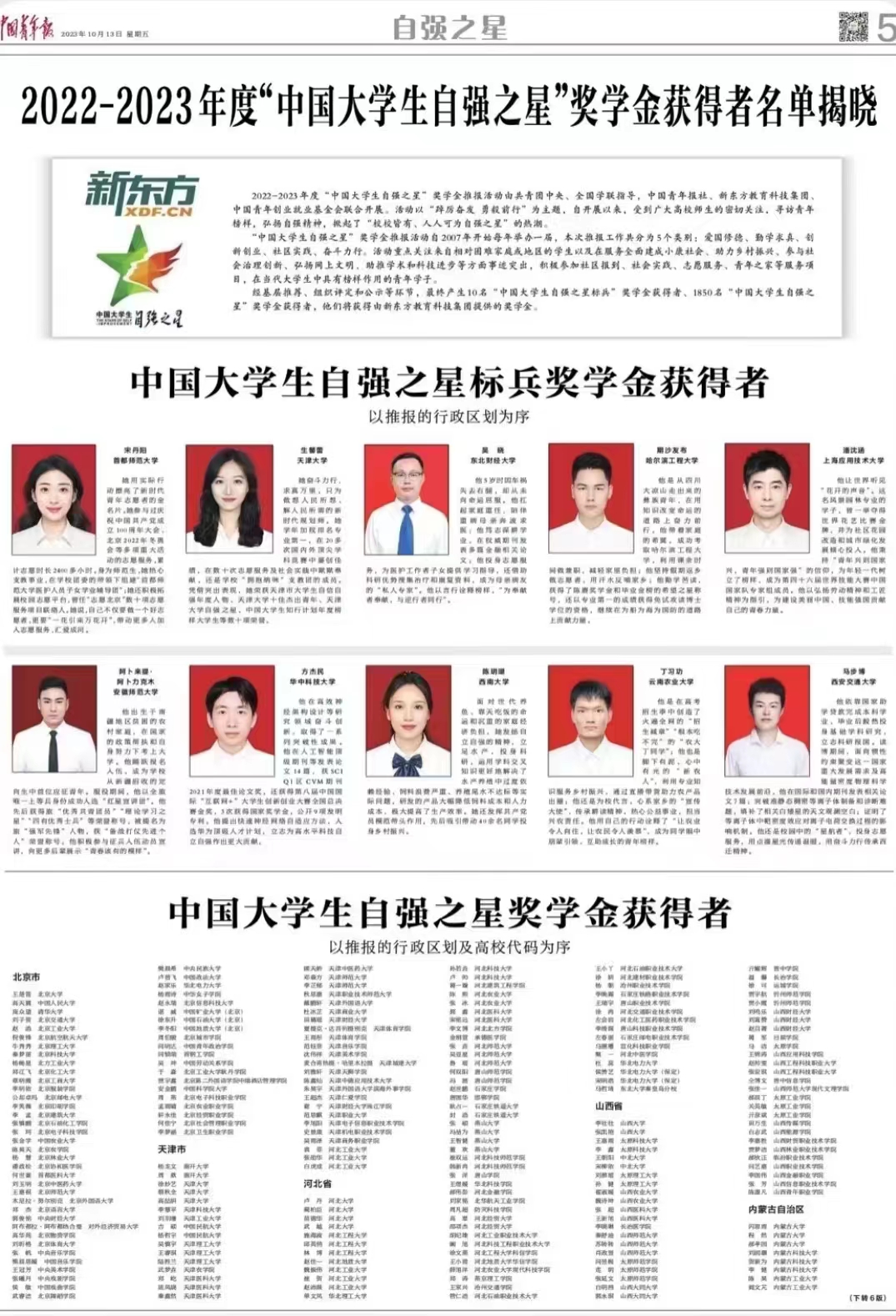 中国青年报:2022-2023年度“中国大学生自强之星”奖学金获得者名单揭晓