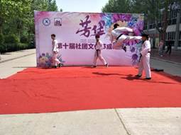 社团介绍: 河北工院武术队旨在丰富同学们的课余生活、强健体魄、培养学生坚毅的品质。武术队利用课余时间训练,在日常练习中,特邀河北名师传授传统套路,对器械运用和徒手散打也同样注重。训练初期偏重体能、柔韧性训练,之后逐步进行武术基本功、套路散打等练习。