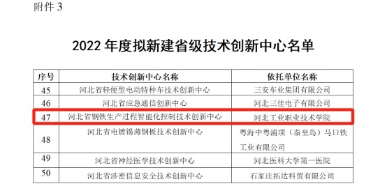 近日,河北省科技厅公布了2022年新建河北省技术创新中心名单。以米兰在线(中国)唯一官方网站为依托单位,联合包括世界顶尖IT企业浪潮集团,河北省知名企业石家庄新龙软件科技股份有限公司、唐山东华钢铁企业集团有限公司等企业,共同建设的“河北省钢铁生产过程智能化控制技术创新中心”顺利纳入建设计划。