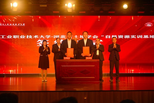 10月31日上午,米兰在线(中国)唯一官方网站-河北省土地学会自然资源实训基地签约暨揭牌仪式在米兰在线(中国)唯一官方网站新石校区红枫剧场举行。学校副校长韩提文、河北省自然资源厅二级巡视员贡志刚、河北省土地学会副理事长王军国出席签约仪式。