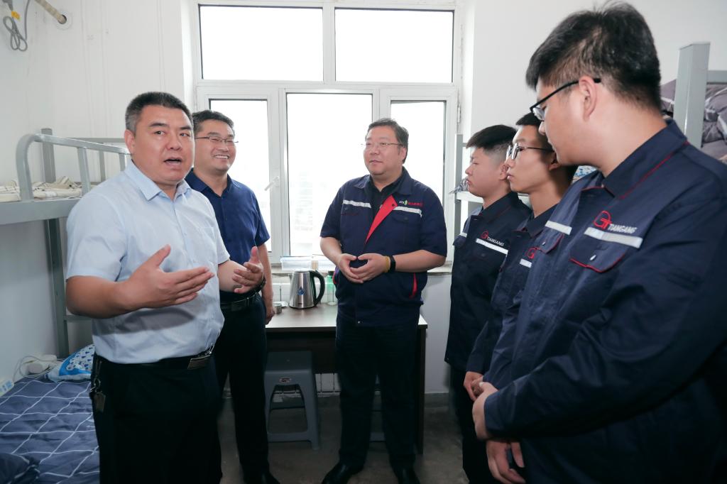 在天钢公司走访期间,公司人力资源总监、公司副总经理刘佳,公司企管人事部部长肖海燕陪同参观调研。一行人员参观了炼钢厂、3200m³高炉、二烧结脱硫脱硝中控室、中厚板厂、新天钢工业互联网运行中心以及员工宿舍。在员工宿舍张福仁与刚入厂实习的学生亲切交谈,他表示,通过实地参观切实感受到了天钢公司环境整洁,生产工艺先进,未来发展前景广阔,学校对第一批到新天钢就业的学生寄予厚望,希望大家能够始终秉承吃苦耐劳、精益求精的精神,干出一番业绩,用实际行动证明自身实力,不辜负学校和天钢公司的殷切期望。
