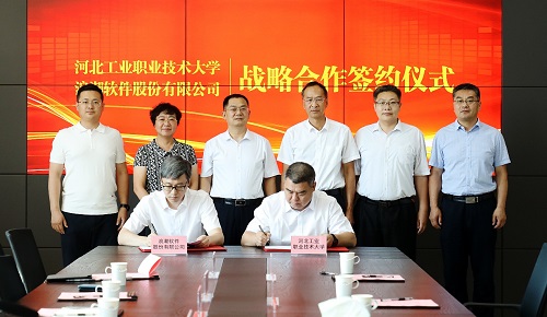 学校副校长张福仁、浪潮集团河北公司副总经理姜智东、浪潮优派科技有限公司副总经理陈天真、山东易校园智能科技有限公司总经理刘家麟及校企双方有关部门负责人参加了签约仪式。