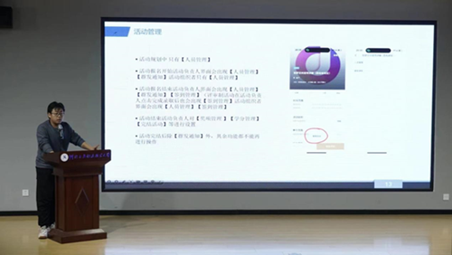 活动现场首先由学校“第二课堂”中心的负责人围绕“如何探索并发展课外兴趣”、“第二课堂项目活动的重要作用”以及“如何正确使用到梦空间系统”三个方面进行详细介绍。并针对各系第二课堂负责人详细讲解了到梦空间系统使用操作流程以及相关注意事项。在最后环节,讲解人员耐心细致地为到场的同学们答疑解惑。本次交流会覆盖人数广、宣讲内容全面,同学们积极踊跃参与互动。