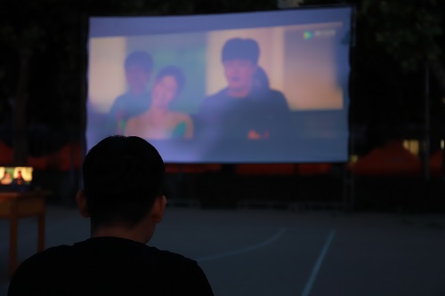 本次主题观影活动在社区广场挂幕布、设影院,历时一个月,组织学生观看了《1921》《风声》《我和我的祖国》等多部爱国影片,让学生们重温革命历史,追忆百年峥嵘。学生们在“露天电影院”搬坐马扎,品鉴经典,参与积极,反响热烈。