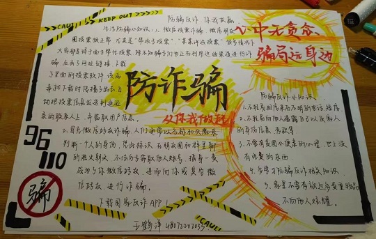 本次活动主要通过征集防诈骗作品,让学生们主动参与到防诈骗的学习和宣传中去,引导学生面对骗局能够做到勿轻信、不误传、同努力、抵虚假。在活动中,同学们踊跃报名、积极参与,大家通过撰写文章、绘制手抄报、录制短视频等方式,学习和宣传相关知识,从而提高防诈骗意识和能力。活动最终从作品中评选出一等奖5项、二等奖10项、三等奖20项。