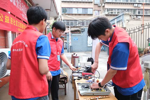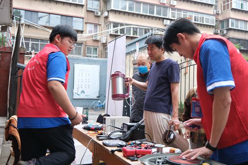 为了帮助更多有需要的居民,他们在社区门口显要位置,悬挂横幅,认真将修理工具摆放整齐,做足了维修前的准备工作。闻讯而来的社区居民也将家中存在故障的电饭煲、电磁炉、电热杯等家用电器拿来维修,在维修过程中,社团成员们耐心为居民讲解故障存在的问题、产生故障的原因、使用时的注意事项等。对于在家中行动不便的居民,或者因家电过大不便于搬到现场的家电,社团成员主动上门进行了维修。社区居民们对社员们辛勤付出给予肯定,纷纷点头称赞。