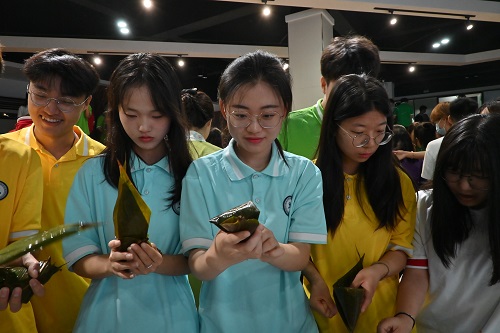 活动组织开展了包粽子、挂艾草、赏汉服、做香囊、习书法、品非遗等端午节传统习俗项目。活动现场粽叶飘香,社区师生巧手翻飞,捋粽叶、填糯米,有着丰富经验的志愿者们耐心地教着学包粽子的同学,大家边动手实践,边分享交流,活动现场洋溢着欢声笑语和节日喜悦。汉服表演、茶艺欣赏、拉花助兴、手工制作,让大家沉浸在浓浓的传统文化氛围中。大家还一同忆诗人、品诗歌,敬仰英雄,寄托祝福。活动受到师生们的一致好评。