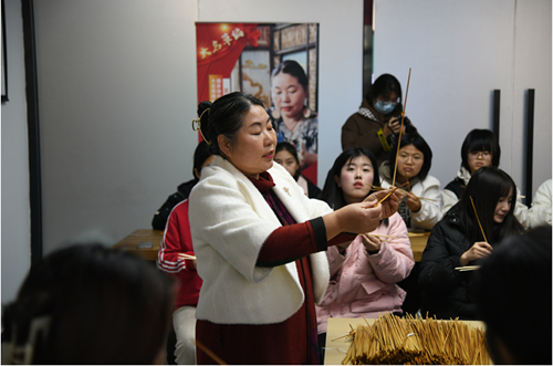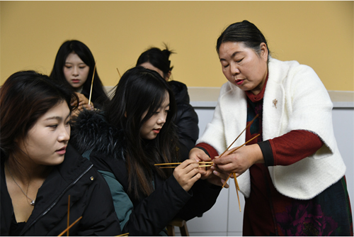 12月7日,在“一站式”学生社区综合服务中心非遗工坊举办大名草编国家级非物质文化遗产进校园活动。活动邀请到大名草编国家级非物质文化遗产代表性传承人王群英老师主讲,王老师倾囊教授有关大名草编的历史和做法,给同学们送上了宝贵的一课。