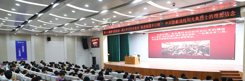 5月23日,学校邀请“永不消失的电波”——“潜伏”原型人物、中共隐蔽战线英雄刘光典烈士之子——刘玉平先生到校,为青马班学员进行主题讲座。