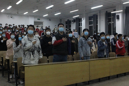 讲座伊始,高老师首先带同学们回顾了《2020年元宵节特别节目》,并提出了抗疫歌曲可以增强全国人民精神力量这一观点。接着,一首《出征》响起,抗疫前线的场面回放在眼前,澎湃激昂的节奏激荡着在场同学的心。随后,高老师带同学们深入分析曲谱,讲解民风调式的独特魅力,解答了歌曲能在艰难环境下给予中华儿女精神力量的原因。通过对《出征》的歌词进行鉴赏,把诗词文化与现代音乐艺术完美地结合在一起,尽显英雄气质。最后,高老师以一首《天耀中华》结束讲座,师生同唱,富有感召,民族自信心油然而生,使同学们再次感受到了抗疫歌曲蕴含的艺术魅力。