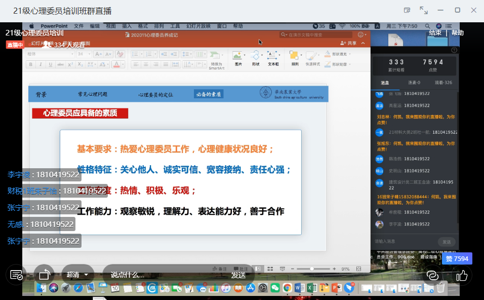 心理委员充当着班级同学的知心伙伴的角色,是一个健康班级不可或缺的存在。11月10日晚,2021年心理委员培训第一场讲座在钉钉平台线上开展。本次讲座米兰在线(中国)唯一官方网站有幸邀请到广东省大学生心理健康教育与咨询工作室主持人、华南农业大学何凯老师为大家做“心理委员养成记”专题讲座,2021级各班心理委员、心晴社成员在线聆听。