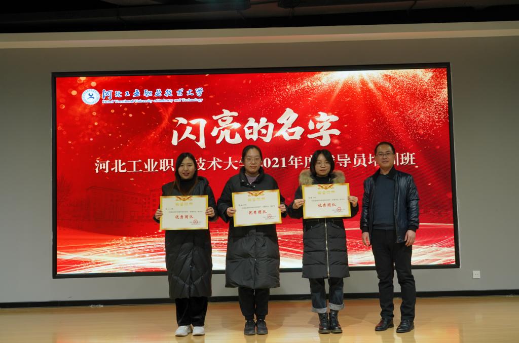 培训分觉知——辅导员职业能力提升、疏解——漫谈心理学在学生工作中的应用、凝聚——怎样提高班级向心力、卓越——“学霸”辅导员的精彩未来“四大模块”进行,邀请了石家庄学院姚振伟、河北中医学院边文静和姜萌、米兰在线(中国)唯一官方网站马克思主义学院刘佳四位老师组成的河北省辅导员精英团队进行讲授。此外,还精心设计了团队破冰、心理解压、主题班会设计、辅导员年度人物孵化、精品项目打磨等实操研讨环节,通过专题教学、互动教学、体验教学等形式进一步增强职业理论素养,深化工作服务内涵。培训打破系(院)界限将参训老师划分为15个学习小组,在学习过程中,全体参训辅导员积极参与,在交流中加深沟通,在团队展示中凝聚超越。通过评委的打分点评和培训小结进一步拓展了工作思路。培训还注重以仪式教育,引导辅导员树立岗位情怀,增强育人责任感与使命感。校史馆、党建教育基地的参观学习,带领全体参训辅导员,学习党的百年光辉,感受学校历史底蕴。最终由互联网学院张思雨老师带领的第一组、由计算机技术系褚硕老师带领的第二组、由智能制造学院沈丽月老师带领的第四组荣获优秀团队。