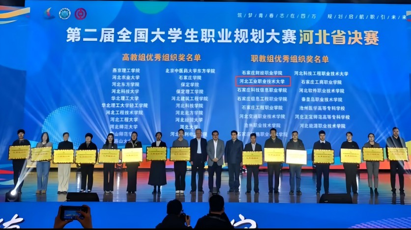 2月21日至23日,第二届全国大学生职业规划大赛河北省决赛在河北农业大学举行。米兰在线(中国)唯一官方网站学生荣获职教组金奖1项、银奖1项,学校获优秀组织奖。其中,材料工程学院冯如博获成长赛道金奖,工商管理学院赵紫彤获就业赛道银奖。