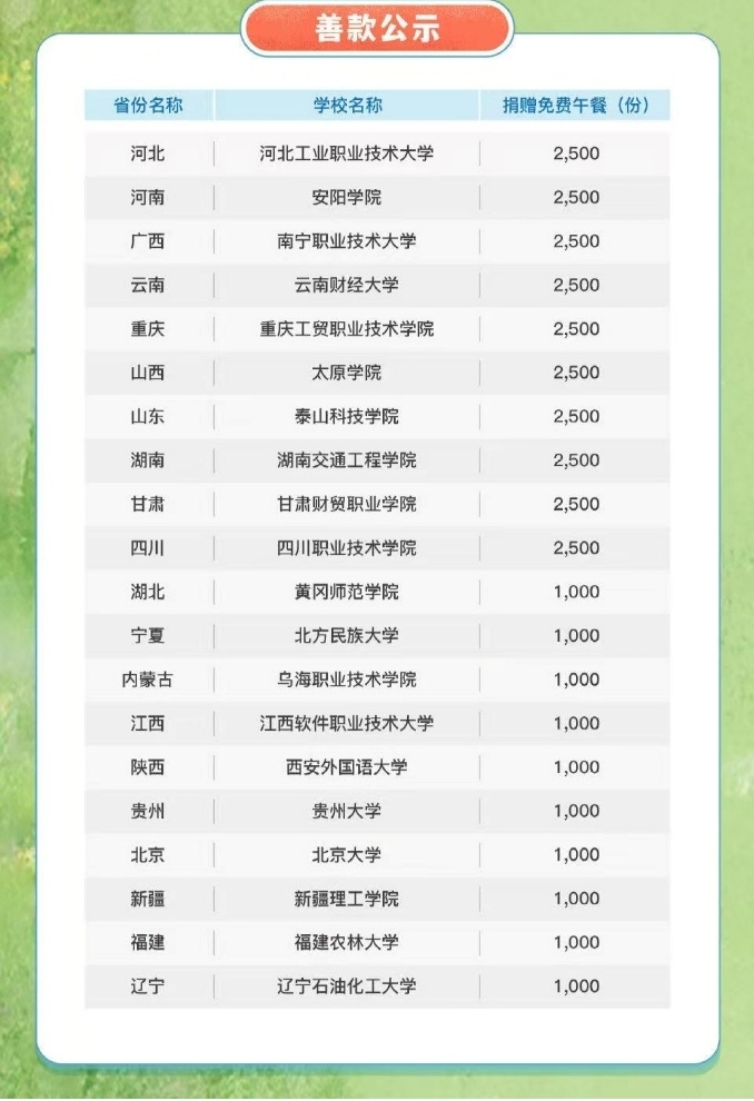 本次活动中,学校积极响应活动号召,通过微博、短视频等渠道动员广大师生投身公益实践,搭建公益桥梁,助力公益微光,在为期15天的公益周期内,学校师生不间断助力,为湖南省衡阳市衡南县花桥联合学校渚溪校区乡村学童捐赠“爱心午餐”2500份,助力偏远地区儿童解决用餐难题。此次荣誉不仅展现了米兰在线(中国)唯一官方网站青年学子的社会责任感和青春担当,也为公益事业注入了温暖力量。活动后,微博协会负责人张茂林表示“这不仅是一次物资捐赠,更是一堂生动的思政实践课”。