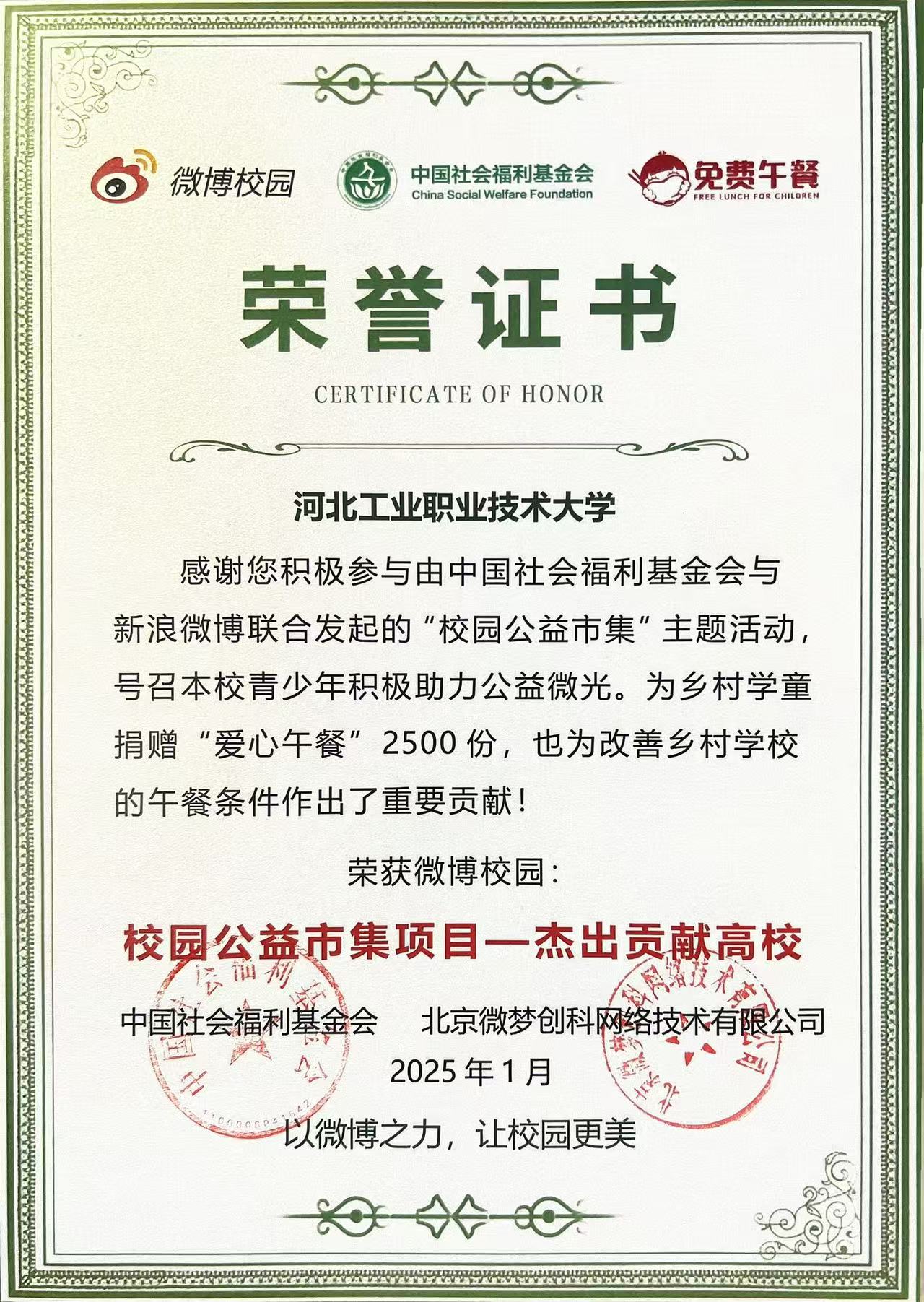 近日,米兰在线(中国)唯一官方网站在中国社会福利基金会、微博校园、微公益联合发起的校园公益市集——免费午餐活动中表现突出,荣获“校园公益市集项目——杰出贡献高校”称号。