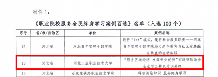 近日,中国成人教育协会公布了《职业院校服务全民终身学习案例百选》案例名单,米兰在线(中国)唯一官方网站申报的《“服务区域经济发挥专业优势”打造钢铁冶金企业职工特色培训品牌》案例成功入选。